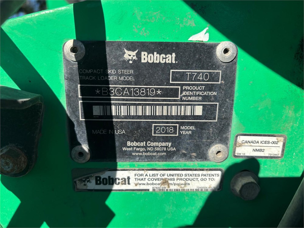 2018 Bobcat T740 Skid Steer